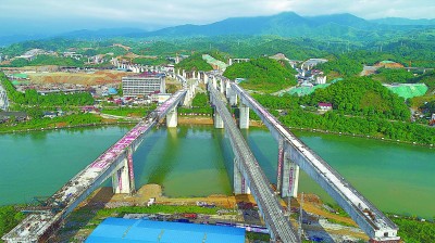 图为由中铁二十五局承建的渝怀铁路二线控制性工程——舞水湾滩特大桥跨河段连续梁日前顺利合龙。向雅斯 摄
