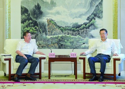 图为7月21日,庄尚标在贵阳与贵州省委书记孙志刚亲切交谈。贾 智 摄 |