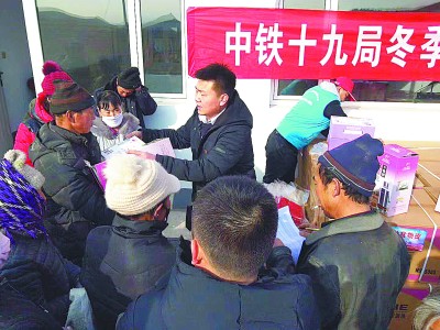图为2020年1月10日,中铁十九局在对口扶贫的河北省张家口市尚义县南朝碾村为村民发放慰问品。 张振宇 摄 |