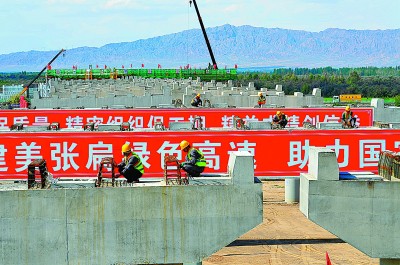 为把疫情耽误的“春光”抢回来,中铁二十局贯彻落实中国铁建党委和项目所在地政府关于防疫管控的各项要求,标明攻坚点,细化时间表、任务书,确保300多个在建项目“能复则复、应复尽复”,实现经营、产值两大指标逆势上扬。图为参建员工在甘肃省重点工程——张掖至扁都口高速公路张掖枢纽跨连霍高速主线桥进行防移挡块作业。 许 岗 摄 |