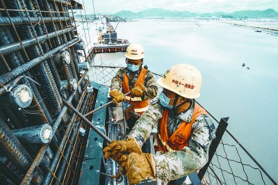 面对今年的疫情冲击,中铁十一局聚焦“高质量发展”主题,调整产业布局,延伸产业链条,密切高端对接,完善经营体系机制,深化“项目管理升级”活动,推进“放管服”改革,持续加强工程公司建设,努力在危机中育新机、于变局中开新局, 确保全面完成全年各项任务指标。图为施工人员在新建福厦铁路湄洲湾跨海大桥进行桥墩模具安装。 杨 光 摄 |