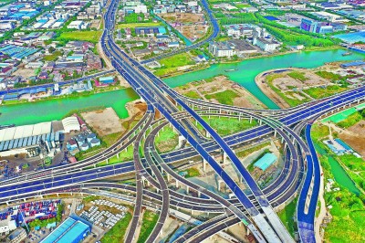 8月26日,由中铁二十局一公司承建的苏州市规模最大、施工最复杂的快速路互通枢纽——尹山湖立交通车。该立交工程全长6833米、共设5个立交口、14条匝道,15米以上高墩柱多达160个,施工中立体交叉作业多、高空作业安全风险大。该公司建设者在施工期间,通过优化组织设计、水陆联动车船倒运、采用BIM技术等,确保施工安全顺利推进。图为尹山湖立交。 张 骏 摄
