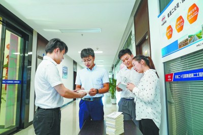 近日,中铁二十五局二公司为干部职工送上包括《工程公司建设应知应会》《廉洁风险防控手册》等内容在内的“口袋书”,让大家随时学、随地翻,促进“充电蓄能”常态化。图为该公司为职工发放“口袋书”。 王云海 摄