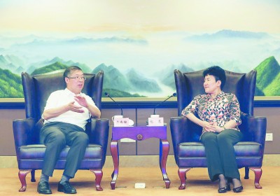 图为庄尚标与四川省人大常委会副主任、达州市委书记包惠亲切交谈。马鹏飞 摄 |