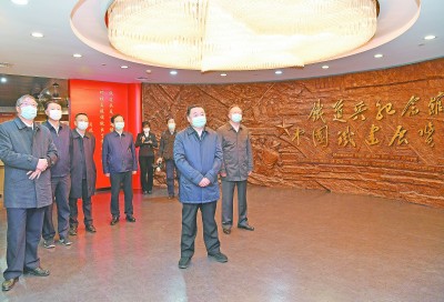 | 图为国务院国资委党委书记、主任郝鹏一行在汪建平、庄尚标陪同下参观铁道兵纪念馆(中国铁建展览馆)。国资委新闻中心供图 |
