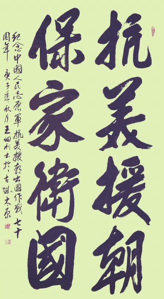 如今,此画已近70年,边沿处颜色出现脱落,幸好画面中仍完好无损。近年,我又重新配制了画框,悬于居室显眼处,每每见到它,总会想起当年美好的回忆。昔日老战友们见到此画时,更是问长问短,相互追忆在朝期间的战斗生活情景,投以羡慕的目光。