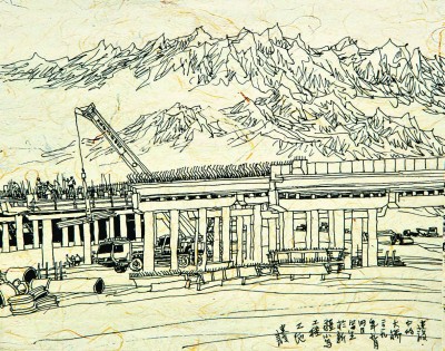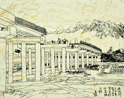 中国铁建工地生活——建设中的大桥 (速写) 李建设 |