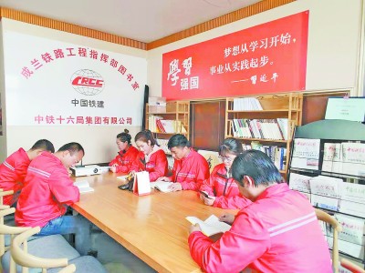 中铁十六局成兰铁路工程指挥部位于海拔2800多米的阿坝州高寒缺氧地区。为提高项目团队战斗力、凝聚力,该项目上场6年来,利用晚间等空闲时间,组织项目职工开展“职工夜读”活动,营造出阅读经典好书、争当时代工匠的良好氛围。图为职工利用空闲时间阅读书籍,了解时事新闻。 肖俊文 摄