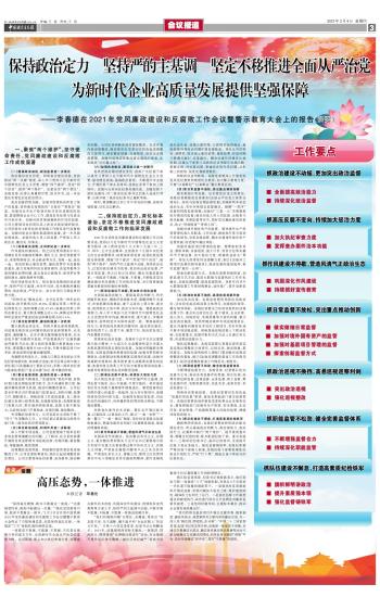 保持政治定力 坚持严的主基调 坚定不移推进全面从严治党为新时代企业高质量发展提供坚强保障