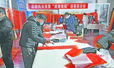 图为中国铁建总部机关党委与中国铁道建筑报社联合举办的“迎春接福”送春联活动现场。王沂光 摄 |