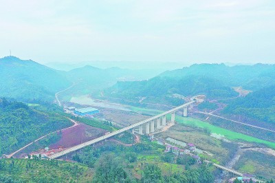 张吉怀高铁连接张家界、凤凰古城等著名风景旅游区,沿线风光秀丽,森林公园、自然保护区分布范围广,全线桥梁隧道比例高达91.3%。图为张吉怀高铁锦江特大桥。 |