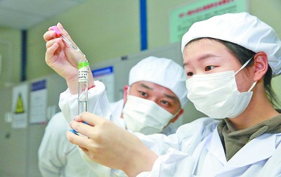 项目在隧道施工场地共修建了25个预沉池,通过四级甚至七级沉淀,然后采取油水分离、气浮过滤等处理,并将达标的清水循环使用,实现废水零排放。图为4月6日,安九项目试验员正在对已经沉淀处理后的废水进行检测。 |