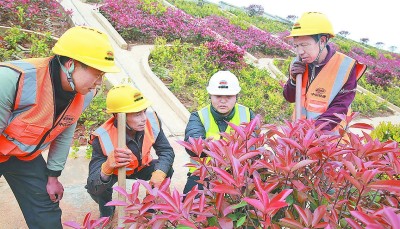 项目通过请教专家,调整绿化树种的选择,优选紫薇等数十种花草,形成了不同时间、不同空间的绿化组合,打造出层次分明、重点突出的生态绿色廊道,高铁开通后实现“三季有花、四季常绿、一路一景”。图为4月8日,项目聘请专家讲解不同花草的种植技术。 |