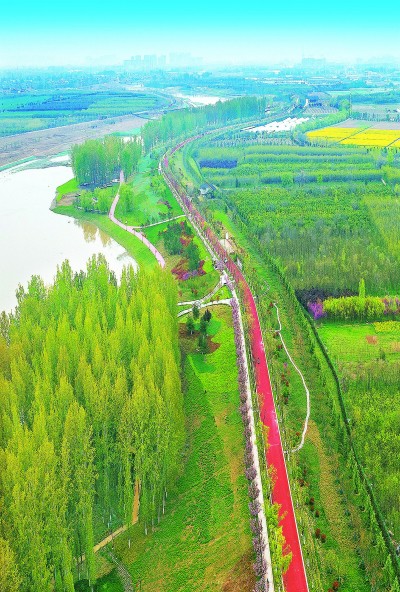图为航拍陕西西安沣河综合治理二期工程。 |