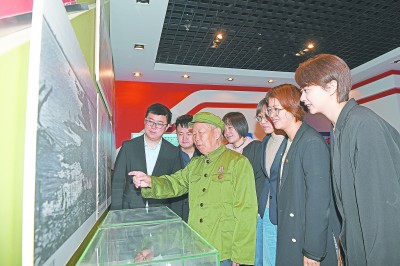 日前,中铁十七局五公司邀请抗美援朝老兵、老铁道兵给青年党员讲党史故事,传承红色基因,凝聚奋进力量。图为老铁道兵汪云发在该公司荣誉室向年轻党员讲述铁道兵的峥嵘岁月。王珍珍 摄