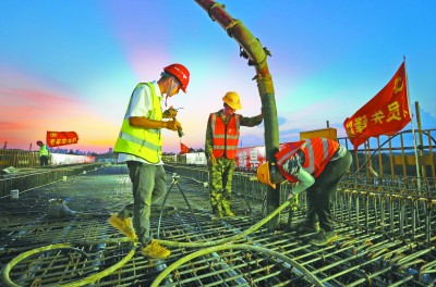 6月以来,中铁二十五局四公司南玉铁路项目部掀起施工大干高潮,提前编制安全专项方案,采用“专职安全员+智能监控设备”盯防重点区域,确保南玉铁路全线首联连续梁安全浇筑。图为专职安全员全程盯控连续梁混凝土浇筑。周群能 摄