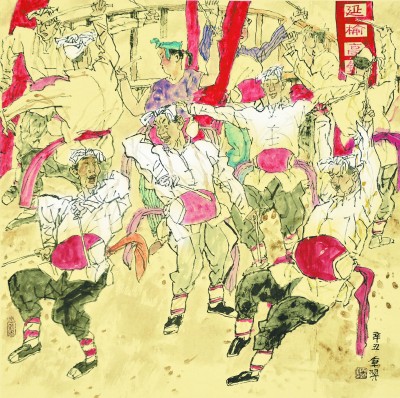 延榆高铁跨陕北 (国画) 成秉羿 |