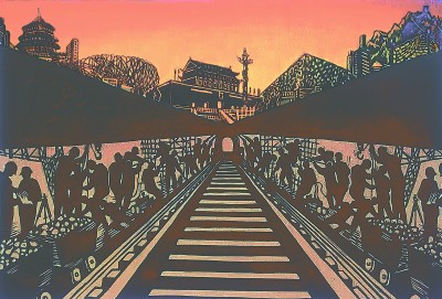 北京地铁——通向奥运的路 (版画) 王希岳 |