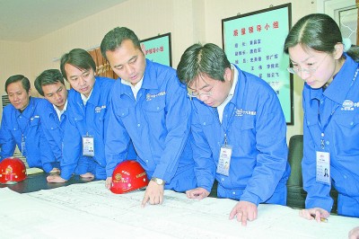 图为2007年,黄昌富(右三)在北京站至北京西站地下直径线工程项目部与技术人员研究技术方案。成海忠 摄 |