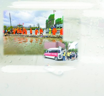 中铁二十五局富春湾项目部组织32名抢险人员驰援杭州市富阳区抢险救灾,他们分工协作,堆沙袋筑起防汛墙,挖水沟疏通排洪渠,守护当地人民生命财产安全。马晓丹 摄