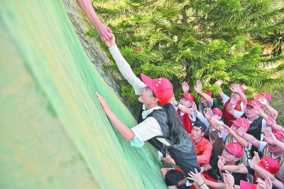 ▶近日,中铁十七局六公司组织新入职大学毕业生开展户外拓训活动,培养团队意识,加深彼此感情。图为新员工齐心协力翻越4米高的障碍墙。蓝曙文 摄