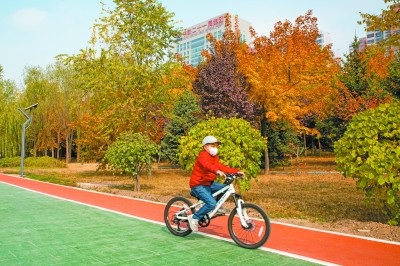 ②小朋友在黄河健身步道上骑行。李 昕 摄