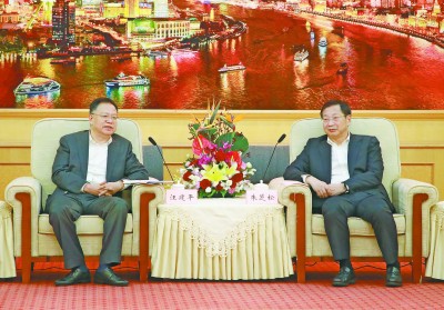 图为11月5日,汪建平与浦东新区区委书记朱芝松会谈。赵向国 摄 |