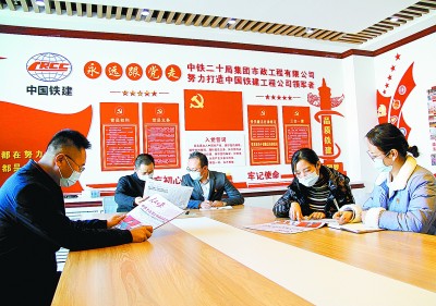 ▶党的十九届六中全会召开后,中铁二十局市政公司积极组织广大党员干部通过视频会议、网络平台、报纸杂志等渠道学习领会全会精神,在公司上下掀起学习宣贯热潮。图为11月12日该公司本部党员在党群活动室研读全会公报。 闫彦龙 摄 |