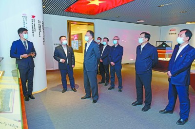 图为11月23日,汪建平一行参观中铁建设企业文化展厅。袁 鹏 摄 |