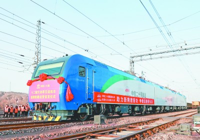 11月24日,中铁二十局首台CEA1A1型“神十二”大功率电力机车8518号牵引的18002次万吨重载列车,从新朔铁路点岱沟站缓缓驶出,标志着中铁二十局首台“神十二”大功率电力机车正式上线运营,开启了铁路运输板块核心设备升级的新纪元。黄天龙 摄