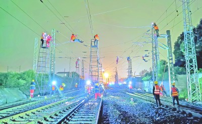 12月6日0时40分,随着湖潮火车站调度一声令下,由中铁十七局四公司负责施工的湖潮项目接触网改造工程进入攻坚阶段。此次封锁点施工,接触网软横跨跨越沪昆线3条股道,有效施工时间短,施工难度和安全压力高。该项目施工前多次进行模拟演练,施工中相关人员全程盯控指挥,保证施工顺利完成。王 军 摄