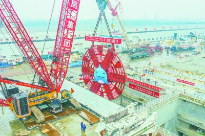 12月12日,由中铁十四局参建的长江流域最大直径盾构隧道——江阴靖江长江隧道盾构机“匠心一号”刀盘顺利吊装下井。刀盘下井定位安装后,将进行盾构机管线连接、调试等工作,不久后即将开启穿越长江之旅。该工程对落实长江经济带发展、长三角一体化国家战略,补齐过江通道短板,加快构建江苏省综合交通运输体系等具有十分重要的意义。韩晓丽 摄