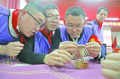 日前,中铁二十五局党委举办基层党支部书记培训班通过情景模拟、现场教学、沙盘演练等形式,深入学习贯彻党的十九届六中全会精神,持续推进党史学习教育走深走实。图为学员们参与《重走长征路》党建主题沙盘演练活动。邓联旭 摄