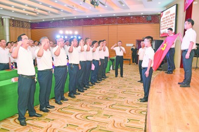 2021年6月26日,中铁十二局建安公司党委在庆祝中国共产党成立100周年大会上组织党员干部重温入党誓词。赵明远 摄 |