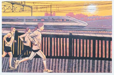 领跑(版画) 李 娟 作作者单位:中铁十九局