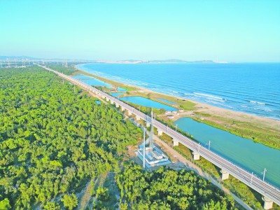 11月25日,中铁十一局参建的汕汕高铁汕尾至汕头南段进入试运行阶段,向着开通运营作最后冲刺。汕汕高铁是粤东地区联系粤港澳大湾区的重要通道,项目建成通车后,将有力助推沿线地区经济新发展,对海上丝绸之路建设有着重要的支撑作用。图为汕汕铁路潮南跨深汕高速特大桥。李良猛 摄