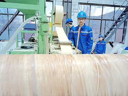 | 中国铁建投产的竹缠绕复合管生产线。王成林 摄 |