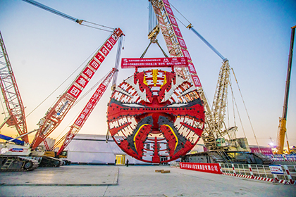 | 2023年6月28日,由中铁十四局承建的北京东六环改造工程西线隧道顺利贯通,这是我国最长盾构高速公路隧道。图为“京华号”盾构机刀盘下井。 马金波 摄 |