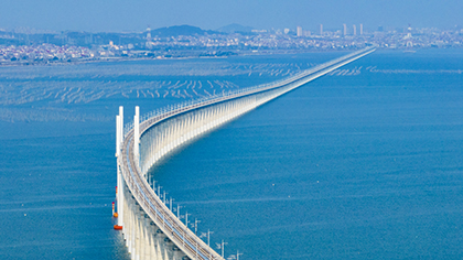 | 2023年9月28日,由铁四院设计,中铁十一局、中铁十二局、中国铁建大桥局、中铁十六局、中铁十七局、中铁建设、铁五院、中铁建电气化局等单位参与建设的全国首条设计时速350公里的跨海高铁——福厦高铁通车运营。图为福厦高铁湄洲湾跨海大桥。 古建敖 摄 |