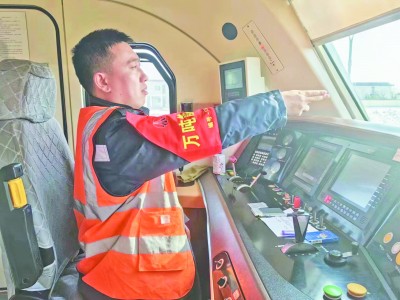 1月26日,列车发车前,中铁十五局轨道公司靖神铁路运输处机务队司机尚小飞在做准备工作。 梁 键 摄 |