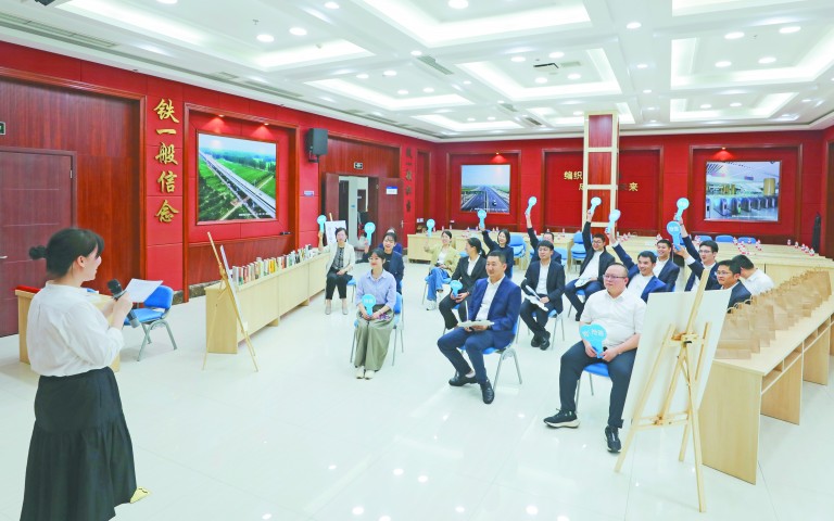 4月22日,在第29个世界读书日来临之际,中铁二十局三公司团委精心策划“一青年·一本书”主题活动,通过旧书新知、经典重现、脑洞大开等互动环节,让参与者以书为媒、以文会友,共赴一场文化浪漫之约,达到开拓视野、享受生活、感悟人生的目的。图为职工积极参与抢答环节,竞猜主持人朗诵的书籍名称和作者。