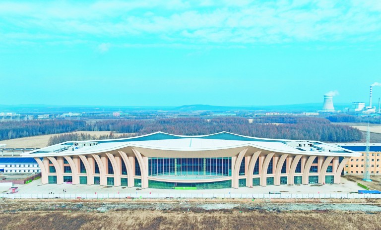 10月25日,由中铁建设承建、铁五院咨询的我国在建最北高铁站伊春西站站房外立面正式亮相,标志着我国在建最北高铁哈伊高铁建设取得新突破。伊春西站总建筑面积19985平方米,站台规模2台4线,外观设计以“林海雪原 松韵龙腾”为主题。该站是我国目前在建纬度最高、地域温差最大的高铁站房,也是哈伊高铁全线规模最大站房。王 舒 摄