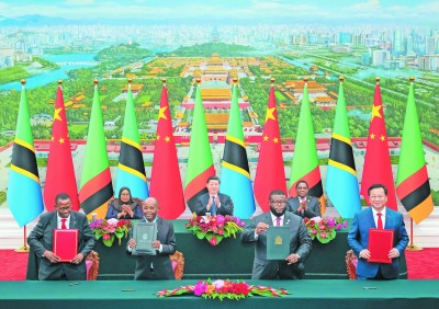 2024年9月4日上午,国家主席习近平在北京人民大会堂同来华出席中非合作论坛北京峰会的坦桑尼亚总统哈桑、赞比亚总统希奇莱马共同见证签署《坦赞铁路激活项目谅解备忘录》。 新华社记者 翟健岚 摄 |