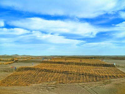 2024年11月28日,中国铁建参与的我国最大沙漠3046公里生态屏障全面锁边“合龙”。这是中国铁建落实习近平总书记关于全力打好“三北”工程三大标志性战役指示批示精神的务实举措。 吴婉秋 摄 |