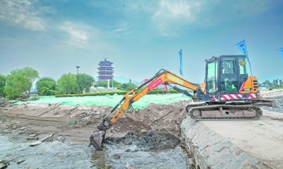 左图为2023年7月29日至8月1日,受特大暴雨影响,北京永定河河道淤积。在北京门头沟区政府部署下,中国铁建赴永定河进行清淤工作。 段继新 摄 |