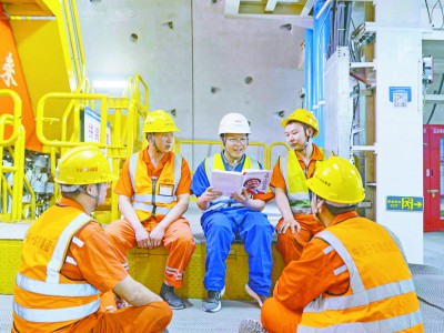日前,在中铁十四局津潍高铁项目,进驻班组党员李成威利用工歇时间,在“津城一号”盾构机上为工友讲授“微党课”,用“接地气”的话语打通产业工人思想教育“最后一公里”。 董煜文 摄