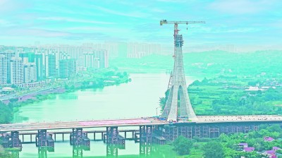 11月7日,由中国铁建大桥局施工的世界最宽独塔混合梁斜拉桥——成都东西城市轴线沱江大桥顺利合龙。该桥最宽处为79米,其宽度规模相当于5个标准篮球场,建设者创新采用“BIM+数字动态调控”技术方案,保障精准合龙。图为合龙后的沱江大桥。张志伟 摄