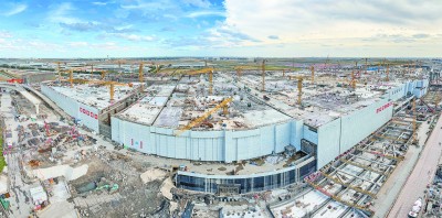 11月11日,中铁二十四局参建的东方枢纽上海东站站房混凝土主体结构封顶。上海东站在国内高铁车站中首次引入“航空模块”,建成后将成为集国家铁路、市域铁路、城轨交通及航空值机等交通功能于一体的大型综合交通枢纽,助力上海形成“西有虹桥枢纽、东有东方枢纽”的双枢纽格局。图为正在建设中的东方枢纽上海东站主站房。