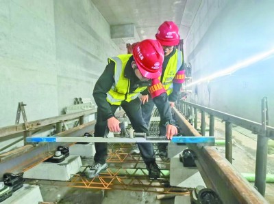 日前,中铁十五局装配科技公司成都轨道18号线项目党支部开展“党员冲在前 守护质量安全”主题活动,将党员先锋力量深度融入质量安全管控一线,创新构建“1+N”监督团队模式,以1名项目部党员为骨干,联动一线作业工人党员、入党积极分子及技术能手组成3-5人“党员质量监督岗”小组,覆盖施工关键区域,实现“网格划分、定点包保”,形成精准监督、及时反馈、多方联动、闭环整改,多部门协调联动管理机制,为工程质量安全筑起坚实的“红色屏障”。图为“党员质量监督岗”小组成员复测轨距。