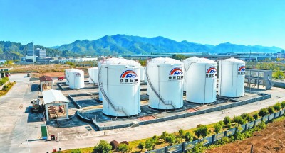 作为中国铁建系统内资质最全的能源经销商,今年以来,中铁十五局物产科技公司倾力打造铁建石油能源产业品牌,通过整合炼厂油库及终端网络,搭配最新上线的“铁建石油”线上采销平台,实现了上下游全产业链自主可控。截至目前,已完成营业收入超22亿元,经营规模超55亿元,成品油销量近33万吨、完成产值24亿余元,一个上下联动、以点带面的产业发展新格局逐步形成。图为铁建石油湖南油库。